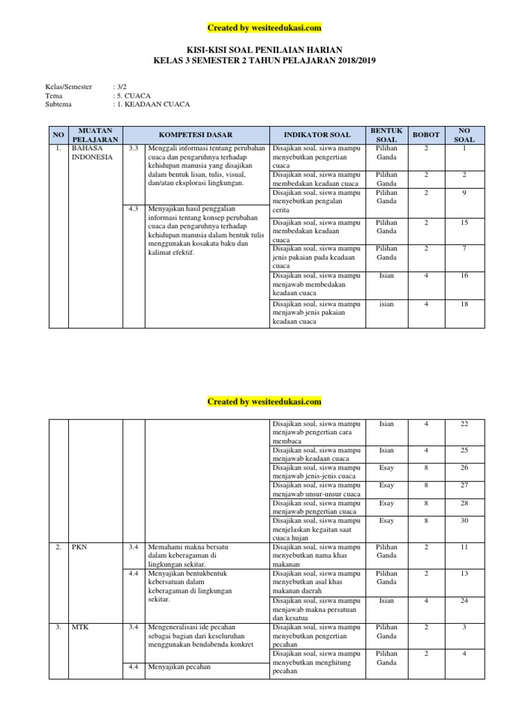 Kisi Kisi Soal Kelas 2 Semester 2 Tema 5 : Kisi Kisi Dan Soal Pas Kelas 2 Semester 2 K13 Lengkap Media Edukasi : 1.berdoa dan bersyukur kepada tuhan yang maha esa merupakan contoh pengamalan pancasila sila ke….. Pengalamanku dengan subtema materinya adalah : Download soal tematik kelas 5 semester 2 tema 8 subtema 1 lingkungan sahabat kita manusia dan lingkungan edisi ter matematika kelas 5 tema. Soal tematik sd kelas 5 tema 7 sejarah peradaban indonesia. Pada kisi kisi soal uts kelas 2 semester 2 k13 revisi 2019 ini di dalamnya terdapat rincian jumlah soal per mata pelajaran sesuai kompetensi dasar (kd), dengan demikian anda akanjauh. Soal dari higher order thinking skill atau disngkat dengan (hots) merupakan.